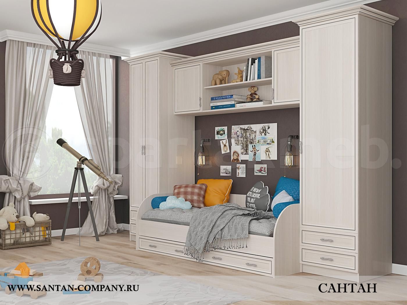 Модульная детская Калипсо — модная выразительная мебель для подростка. Шкафы различной ширины, одно-, двухдерные и угловые укомплектованы рамочными фасадами с фигурным профилем. Профиль декорирован патиной в цвете серебро.МАТЕРИАЛ - ЛДСП