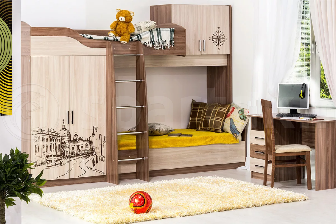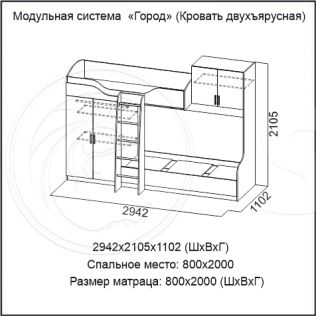 Тип кровати Недорогие Размер Спальное место 80х200 Ширина, мм 2942 Высота, мм 2105 Глубина, мм 1102 Материал ЛДСП Особенности кровати С настилом Страна производитель Россия Гарантия 12 мес -