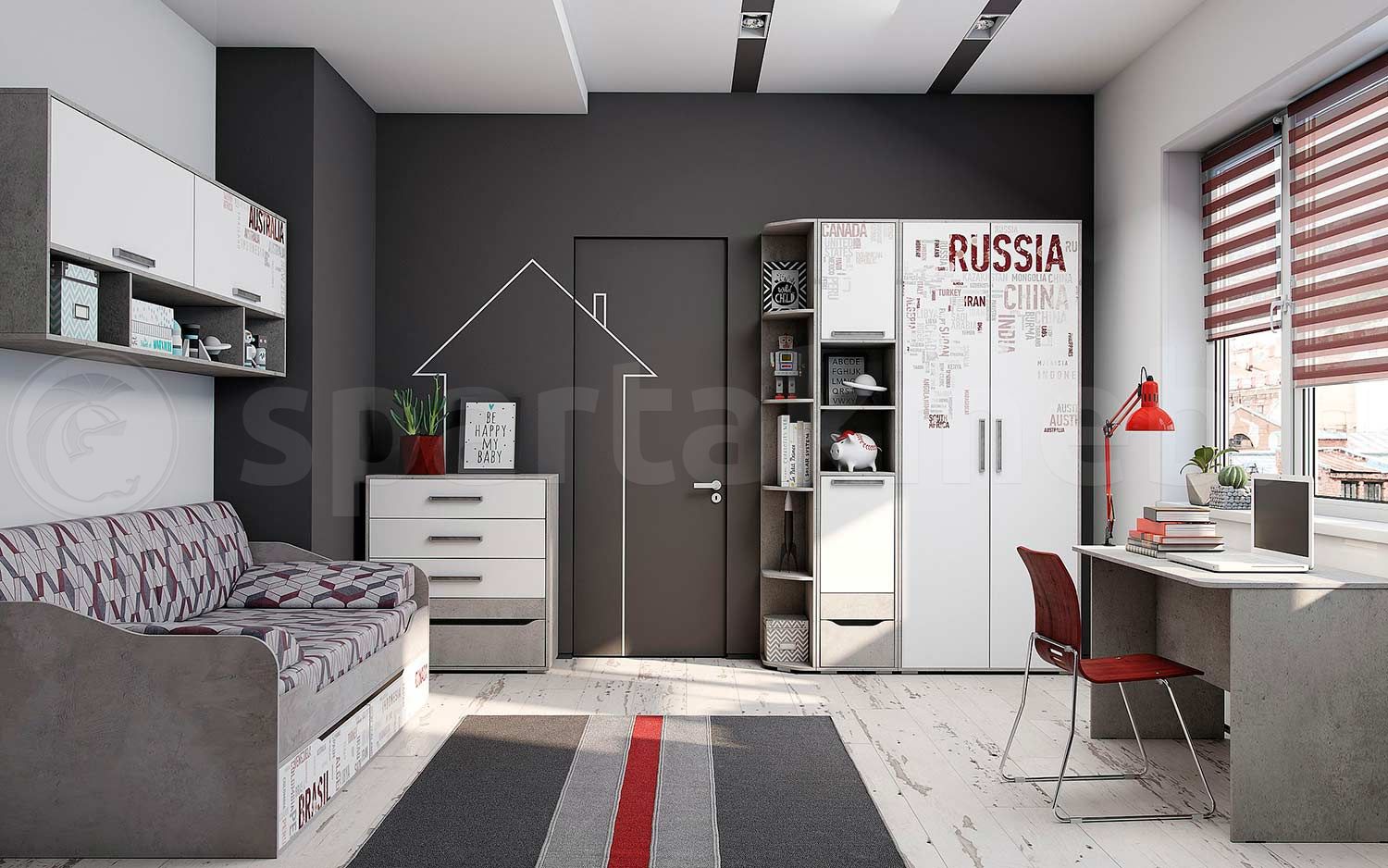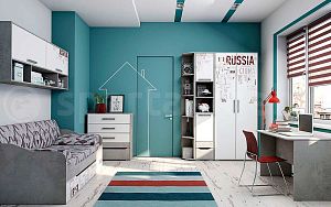 Предлагаем Вашему вниманию новый набор подростковой мебели «Грей». Гарнитур представлен в цветовом сочетании «Цемент светлый/Белый с фотопечатью». Модули гарнитура комплектуются петлями «Titus» с возможностью установки демпферов и регулируемыми по высоте опорами. Выдвижные ящики комплектуются телескопическими направляющими полного выдвижения. Обращаем Ваше внимание, что открытые торцы всех деталей гарнитура облицованы кромкой согласно стандартов, действующих для детской мебели. Безопасная мебель - залог здоровья ваших детей!