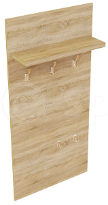 Крючки для одежды и полка для головных уборов закреплены на щите ДСП, с обратной стороны в глухие отверстия установлены навески для крепления на стену.
