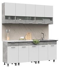 Бетонный декор ЛДСП "Ателье светлый", объединяющий в себе матовую поверхность с полированным покрытием, с эффектом патины, прекрасно сочетается со спокойным ЛДСП "Белый шагрень". Контрастная кромка на фасадах придает коллекции "Денвер" изысканность и актуальность. Вкладные створки кухни утоплены внутрь бетонного корпуса, что создает рамочный эффект фасадной группы.