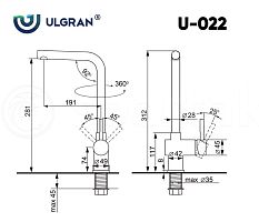 Смеситель U-022 — современный смеситель с краном для питьевой воды. Имеет нескольких цветовых решений, которые подойдут под любую мойку. Интересный дизайн смесителя делает подходящим для современных кухонь. Все необходимые материалы для подключения идут в комплекте в фирменной коробке. Смеситель укомплектован качественной и гибкой подводкой, которая рассчитана на давление не менее 10 атм. Изделие окрашено особой краской и дополнительно покрыто трехкомпонентным противоударным лаком. Новейшие материалы и технологии: керамический картридж и корпус из высококачественной латуни. Полная комплектация: фирменная коробка с ложементом из поролона, гибкая подводка, комплект крепежных элементов, технический паспорт и гарантийный талон.