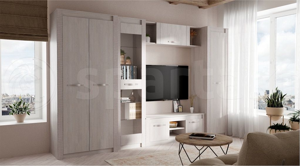 Гостиная «Монако» - это стильный современный дизайн, надёжная фурнитура, просторные шкафы для одежды и белья. За стеклеными створками можно разместить как дорогой фамильный сервиз, так и любой другой аксессуар, которым по праву гордится Ваша семья. До мелочей продуманная возможность установки телевизора делают гостиную ещё более удобной в эксплуатации В правильно составленной композиции, все элементы гарнитура дополняют друг друга, и раскрывают свою незаменимость.