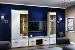 Приятным дополнением к спальне «Фортуна» является изящная гостиная с одноименным названием. Теплый древесный корпус гостиной украшен сияющим глянцем, зрительно расширяющим помещение. Сочетание палитры цветов удивительное и необыкновенное. Такая мебель не только украсит комнату, но и создаст уют и комфорт в вашем доме.МАТЕРИАЛ - МДФ -