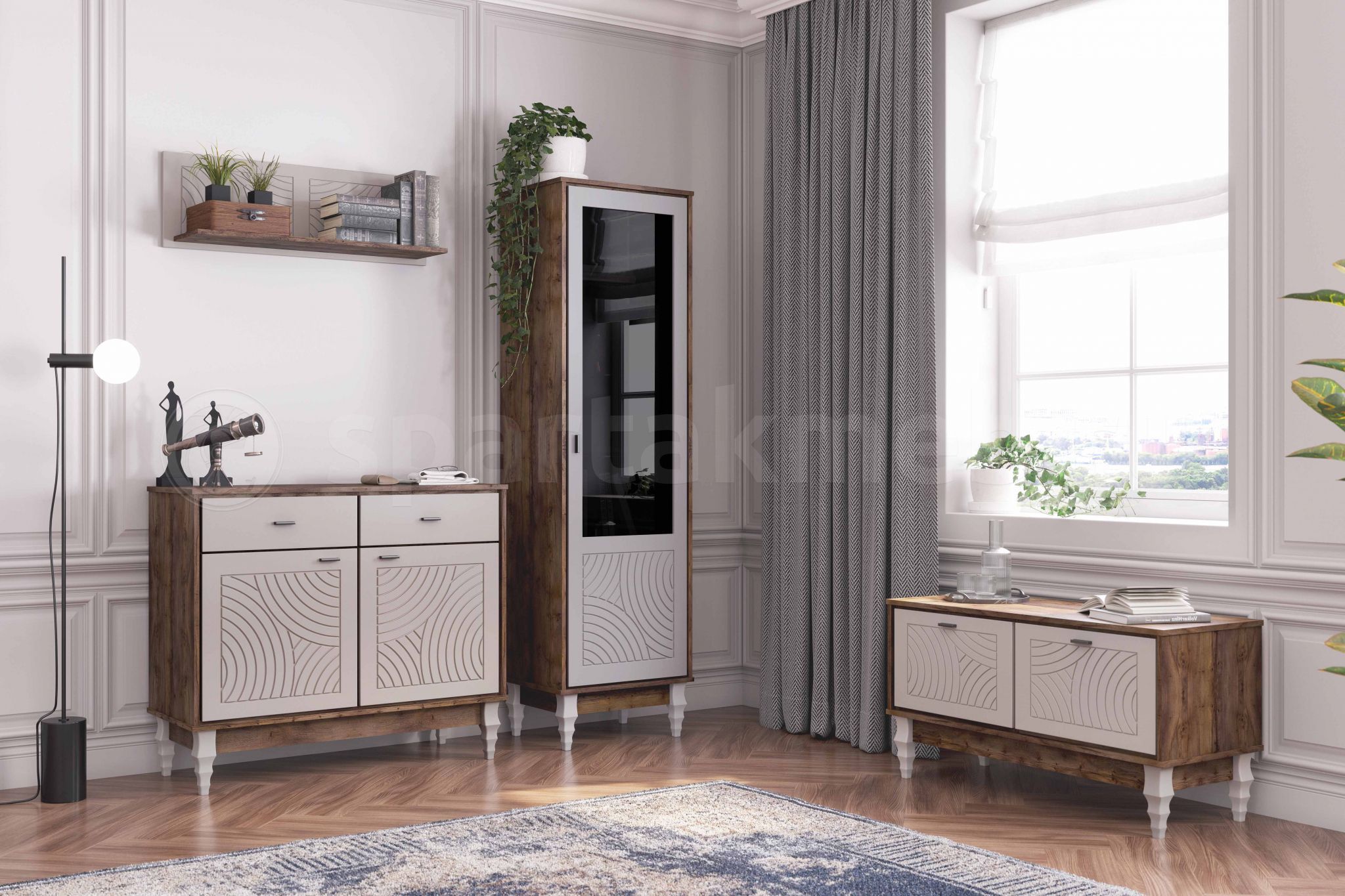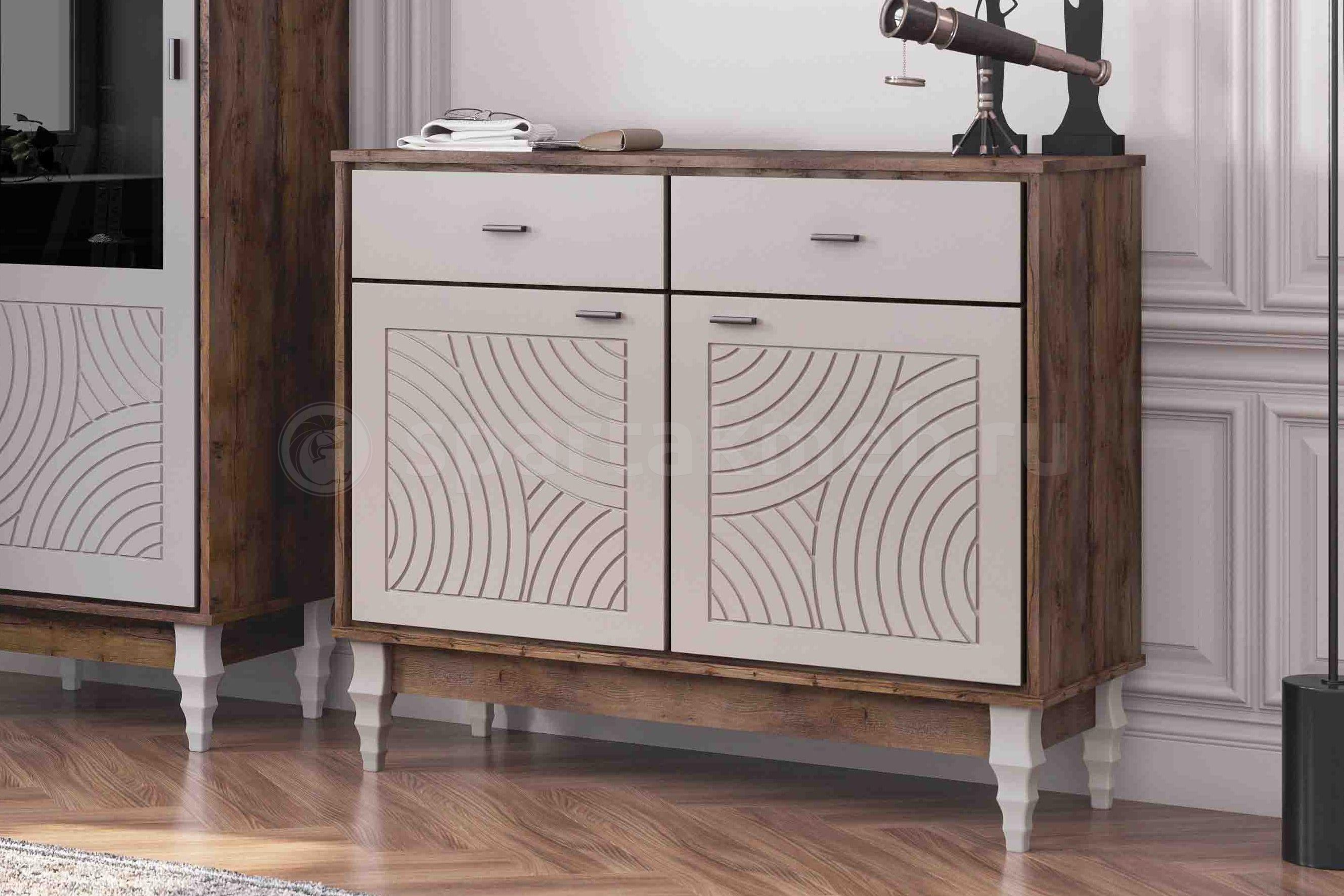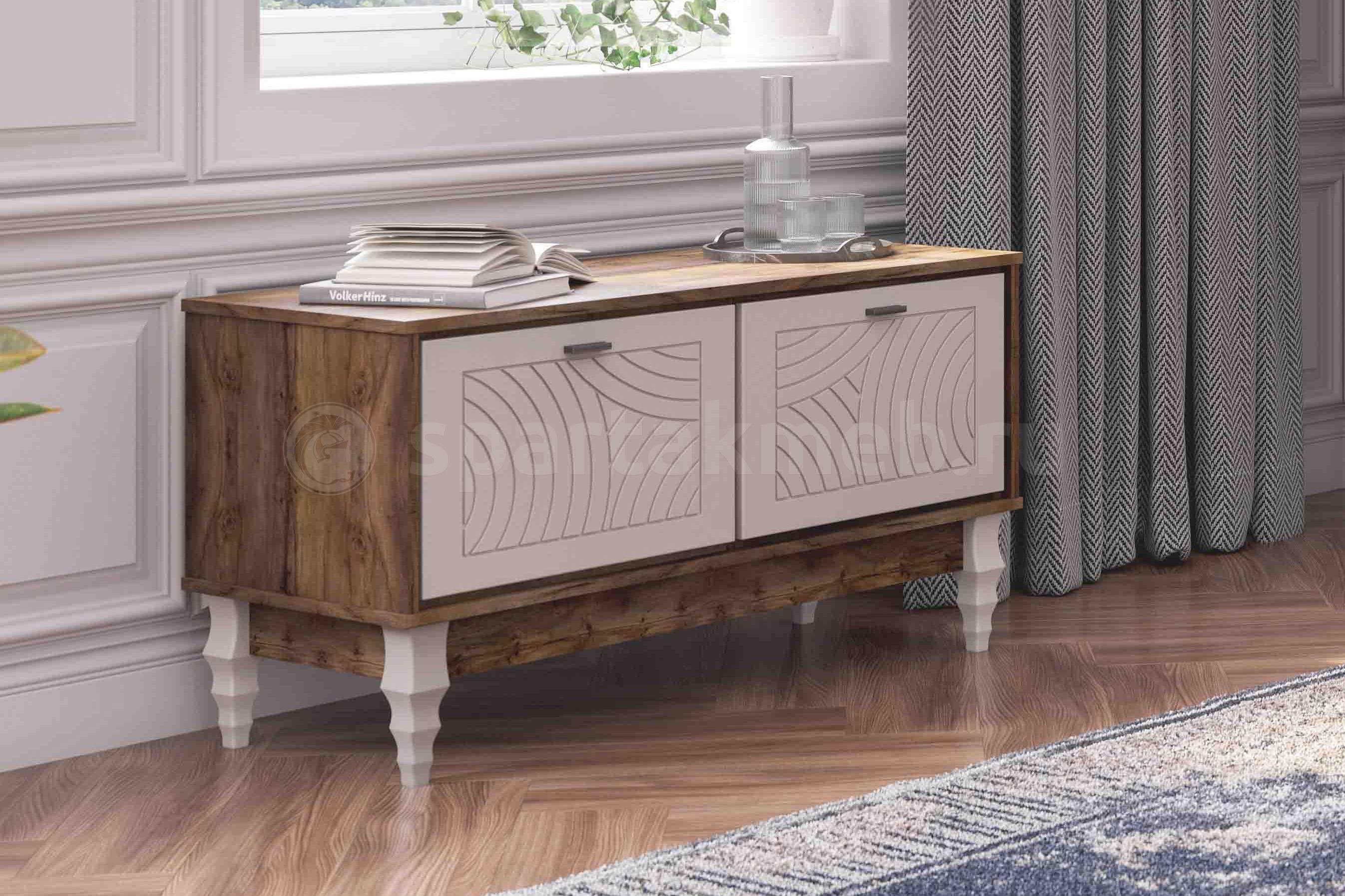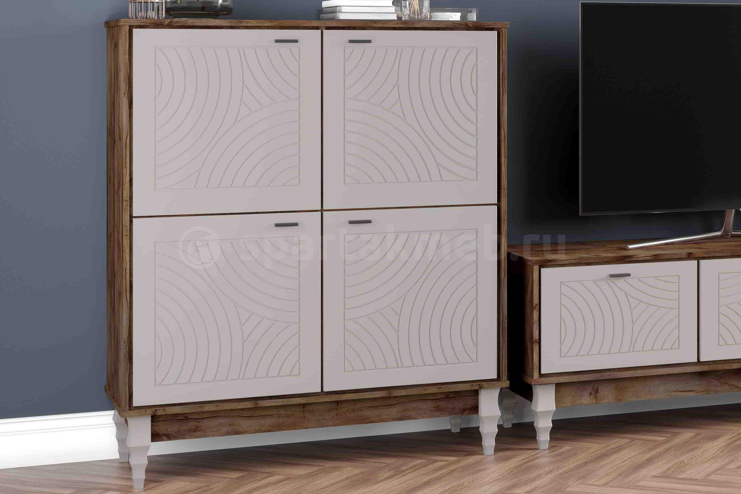 Элементы декора: ФрезеровкаМАТЕРИАЛ - ЛДСПМАТЕРИАЛ - МДФМДФ — плитный строительный материал, изготавливаемый из мелкой древесной стружки с добавлением натуральных связующих компонентов. Он обладает гладкой, однородной поверхностью, которая может покрываться лаком и краской, облицовываться пластиком или шпоном. Произведенные из него изделия обладают длительным сроком службы, экологической безопасностью, износостойкостью и устойчивостью к воздействию влаги.