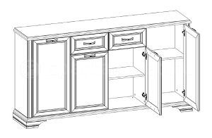 Тумба Анрэкс Монако 4D1S гармонично впишется в интерьер спальной или гостиной комнаты, созданный в неоклассическом стиле и станет полезным фукнциональным предметом мебели, позволяющим разместить большое количество различных вещей и предметов. Тумба содержит 3 секции, каждая из которых включает по 2-а отделения, и 2 выдвижных верхних ящика в центре.