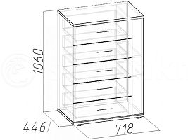 Ширина, мм 718 Высота, мм 1060 Глубина, мм 446 Материал ЛДСП, МДФ Особенности комода С ящиками Количество ящиков 5 ящиков Страна производитель Россия Гарантия 12 мес -