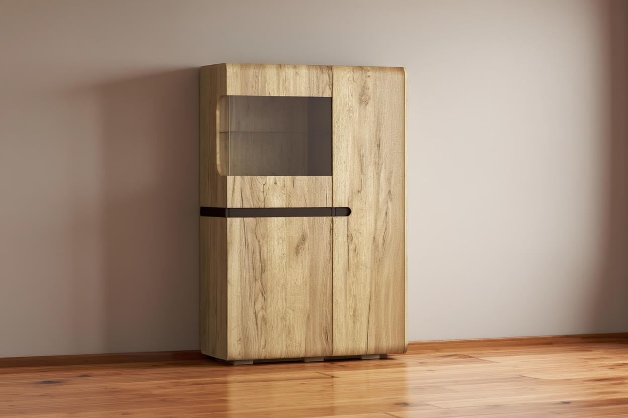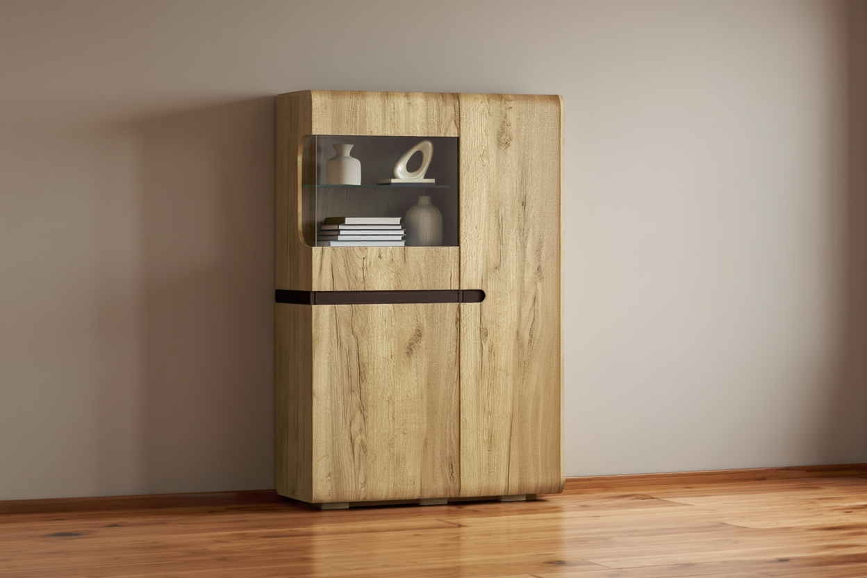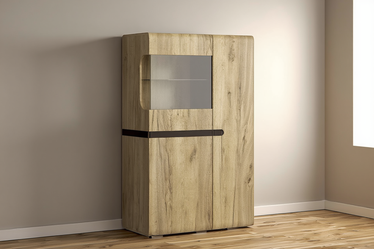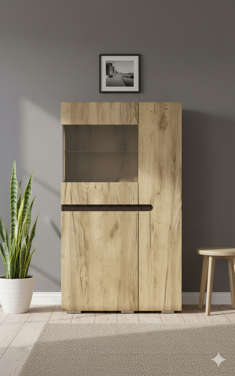 Шкаф-витрина малая (440) Ультра Дуб Крафт серый/Дуб Приморский