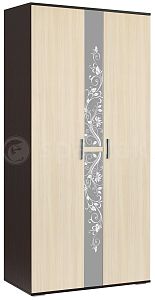 Шкаф 2х створчатый «Алегро» - это незаменимый элемент гостиной для тех, кто ценит в мебели вместительность и броскую внешность. За фасадами шкаф скрыто два отдела. В одном установлены две полки и штанга для одежды, во втором – четыре полки. Особенность шкафа – тонкая зеркальная линия на фасаде, украшенная цветочным пескоструем.