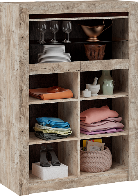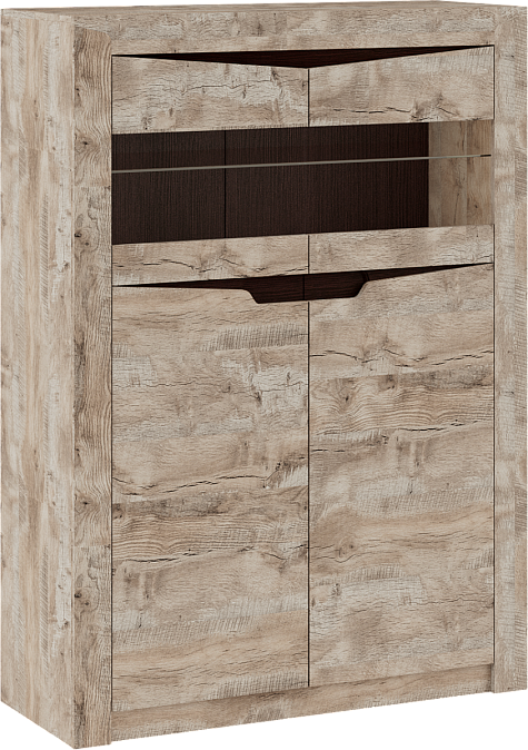 Витрина малая 2х створчатая (440) Хилтон Дуб Юкон/Гранж