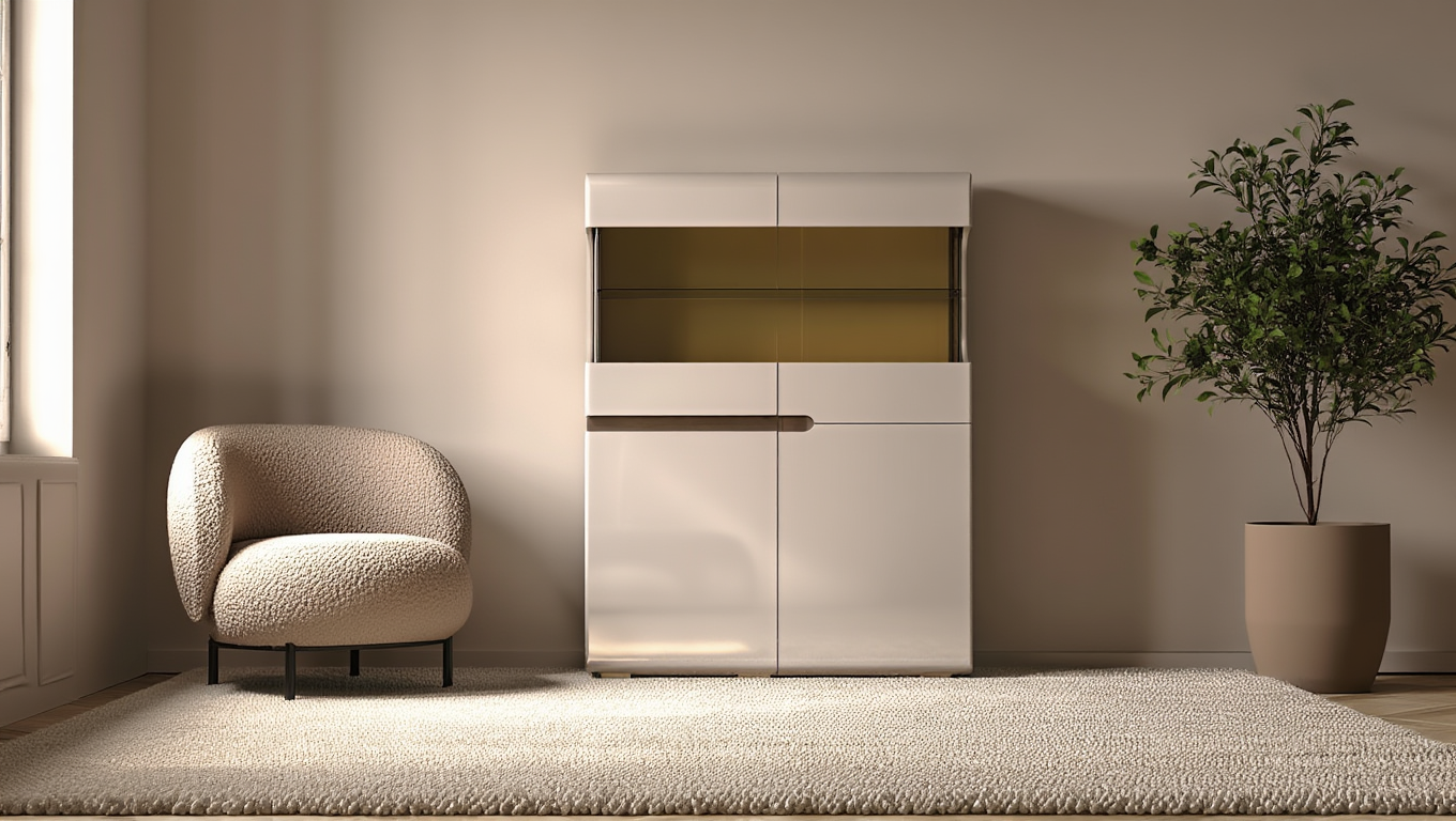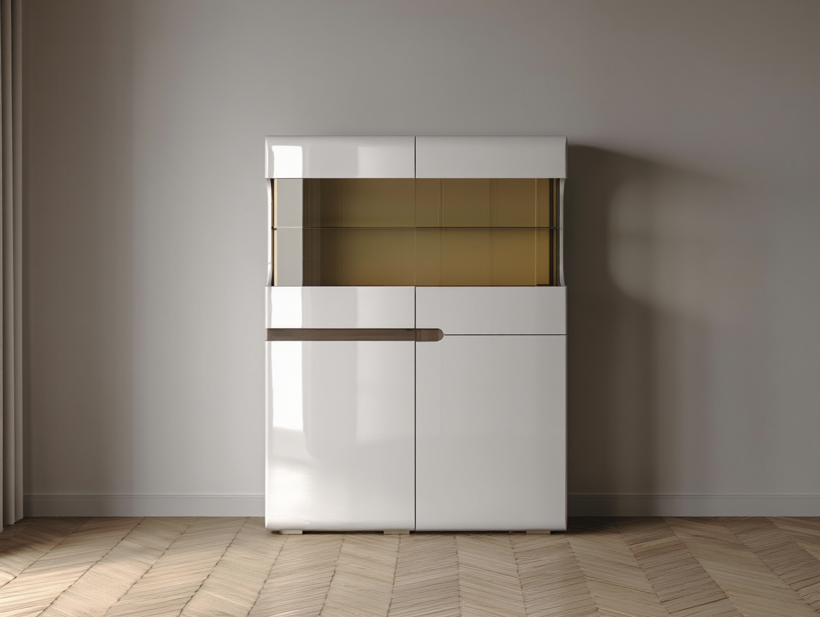 Шкаф-витрина 2х ств. малая (440) Ультра Белый / Белый глянец