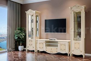 Эффектная, богато декорированная золотом мебель для гостиной «Рафаэлла» украсит любой интерьер, выполненный в историческом стиле. Любителям роскоши больше не нужно откладывать мечту о богатом убранстве до лучших времен. Корпусная мебель выглядит по-королевски, но цена ее во много раз ниже, чем стоит антиквариат и работы краснодеревщиков.МАТЕРИАЛ - ЛДСПМАТЕРИАЛ - МДФМДФ — плитный строительный материал, изготавливаемый из мелкой древесной стружки с добавлением натуральных связующих компонентов. Он обладает гладкой, однородной поверхностью, которая может покрываться лаком и краской, облицовываться пластиком или шпоном. Произведенные из него изделия обладают длительным сроком службы, экологической безопасностью, износостойкостью и устойчивостью к воздействию влаги.
