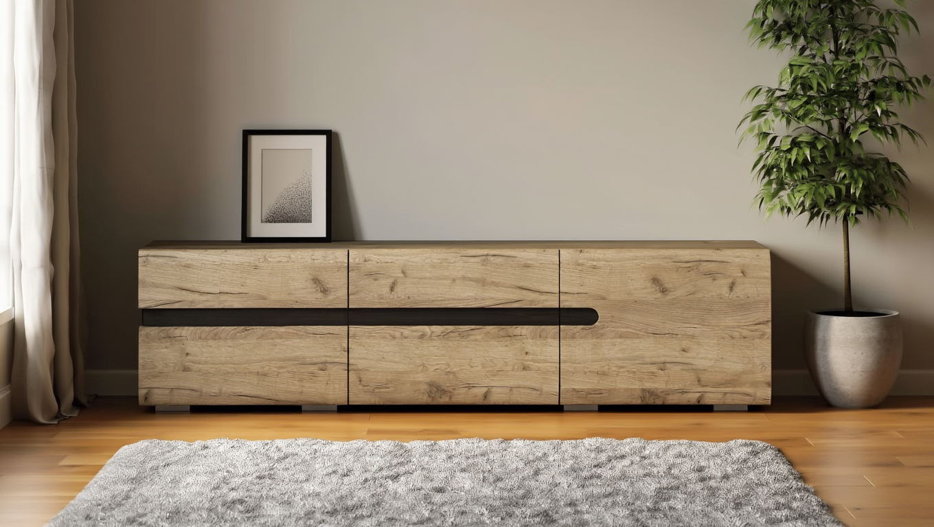 Тумба под ТВ №2 Ультра Дуб Крафт серый/Дуб Приморский