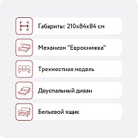 Габариты дивана в сложенном виде (ШхВхГ), см: 210x84x84.