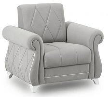 Его плавно изогнутые подлокотники и декоративная ромбовидная строчка придают изделию очарования.