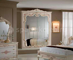 Четырехстворчатый шкаф Диана от Российской фабрики «ДИА мебель» выполнен в бежевом глянцевом цвете, с зеркальным фасадом и деревянными рельефами. Такой вместительный и не габаритный шкаф, не займет много места даже в маленькой спальне. Ценители изысканный интерьеров по достоинству смогут оценить спальню "Диана".