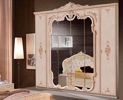 Шестистворчатый шкаф Диана от Российской фабрики «ДИА мебель» выполнен в бежевом глянцевом цвете, с зеркальным фасадом и деревянными рельефами. Такой вместительный и не габаритный шкаф, не займет много места даже в маленькой спальне. Ценители изысканный интерьеров по достоинству смогут оценить спальню "Диана".