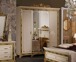 Четырехстворчатый шкаф Катя от Российской фабрики «ДИА мебель» выполнен в бежевом цвете с глянцевым покрытием и позолоченными, резными вставками на фасадах. Шкаф поделен на три части и имеет не только полки для одежды но и большую штангу для вешалок. Такой большой и многофункциональный шкаф будет не заменимым модулем в вашей спальне.