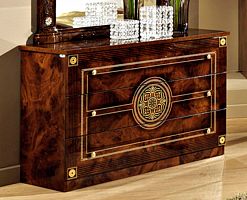Комод с зеркалом Рома (орех), от Российской фабрики «ДИА мебель» выполнен в строгом, классическом стиле. Ореховый цвет в сочетании с глянцевым покрытием и золотистым орнаментом на фасаде придает элегантность. Состоит из трех больших, вместительных полок и большого зеркала. Маленькие аккуратные ручки цвета позолоты придают атмосферу роскоши. Вся коллекция "Рома" предназначена только для истинных ценителей элегантного классического стиля.МАТЕРИАЛ - ЛДСПМАТЕРИАЛ - МДФ