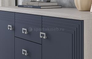 - Фасады представлены в комбинированном варианте: створки из МДФ 16 мм под пленкой ПВХ: Холст белый, Холст вулканический, Холст сапфировый. Комплектуются петлями с доводчиком и матовыми хромированными металлическими ручками.