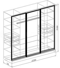Стиль Современный Тип шкафа Прямой, Шкаф-купе Тип поверхности Матовая, Текстурная Размер шкафа Трехдверный Назначение Для белья, Для одежды Ширина, мм 2280 Высота, мм 2180 Глубина, мм 710 Материал ЛДСП, МДФ Особенности шкафа С зеркалом, С рисунком, С ящиками Страна производитель Россия Гарантия 12 мес -