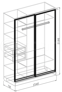 Стиль Современный Тип шкафа Прямой, Шкаф-купе Тип поверхности Матовая, Гладкая Размер шкафа Двухдверный Назначение Для белья, Для одежды Ширина, мм 1540 Высота, мм 2180 Глубина, мм 710 Материал ЛДСП, МДФ Особенности шкафа С зеркалом, С ящиками Страна производитель Россия Гарантия 12 мес -