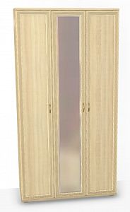 Шкаф трехстворчатый неглубокий (глубина 352 мм). Фасады имеют тиснение с эффектом патины. Центральный фасад - зеркальный.