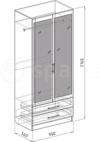 Стиль Современный Тип шкафа Прямой, Распашной Тип поверхности Матовая, Гладкая Размер шкафа Двухдверный Назначение Для белья, Для одежды Ширина, мм 900 Высота, мм 2160 Глубина, мм 560 Материал ЛДСП, МДФ Особенности шкафа С зеркалом, С ящиками Страна производитель Россия Гарантия 12 мес -