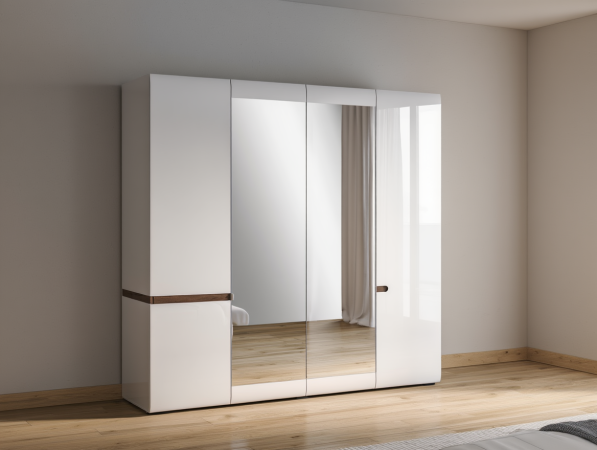 Тип шкафа Прямой, Распашной Размер шкафа Четырехдверный Назначение Для белья, Для одежды Ширина, мм 2186 Высота, мм 2150 Глубина, мм 540 Материал ЛДСП Особенности шкафа Глянцевые, С зеркалом Страна производитель Россия Гарантия 12 мес -