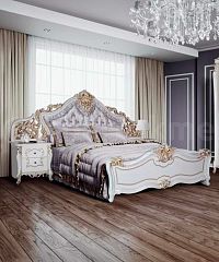 Спальня Джоконда — элитное решение для изысканной обстановки. Изделия из этого гарнитура смотрятся безукоризненно красиво. Они сочетают в себе классику комфорта и аристократическое благородство дизайна. Гарнитур исполнен в духе Ренессанса. Мебель отличается криволинейными формами и декором с замысловатыми спиралями. Она имеет свой неповторимый «характер». Изделия оснащены итальянской фурнитурой SALICE. Глядя на такую спальню, хочется оставить все дела и побыстрее отдохнуть. В дополнение к гарнитуру можно приобрести качественный ортопедический матрас. Покупайте мебельный набор Джоконда, создавайте спальню мечты!