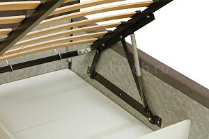Особенности кровати включают подъемный механизм, который позволяет легко поднять матрас и использовать пространство под кроватью для хранения вещей.