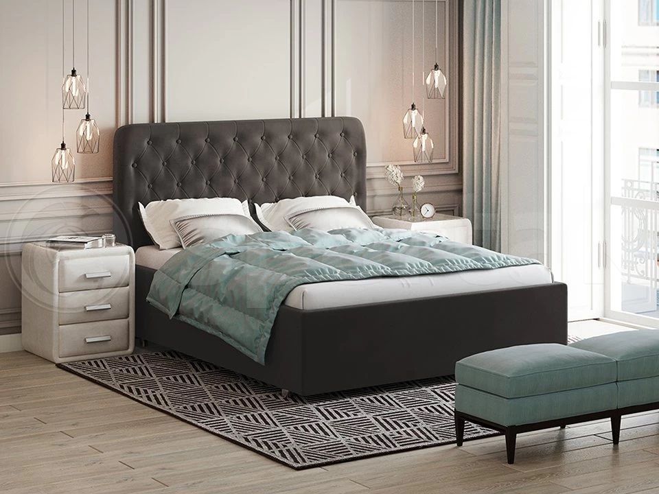 Классическая форма изголовья привлекает внимание за счёт выразительных линий, подчеркнутых декоративными гвоздями. Простая, легкая и изысканная кровать добавит интерьеру нотку классики.