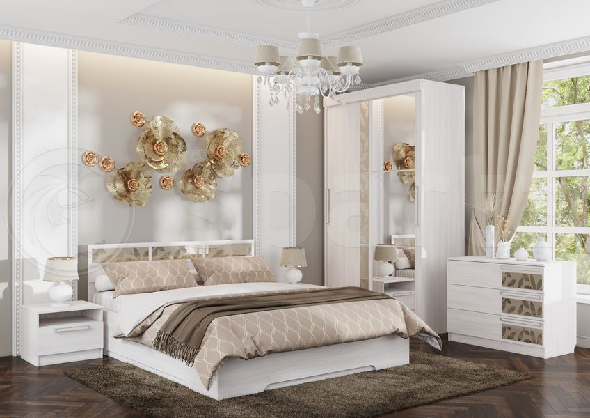 Спальный гарнитур «Николь 1» Это модульная система для спальни выполненная в популярной расцветке «Ясень Анкор светлый». В качестве декора фасадов, за дополнительную оплату, модули гарнитура можно комплектовать зеркалами и декоративными стеклами. Выдвижные ящики комплектуются телескопическими направляющими полного выдвижения.