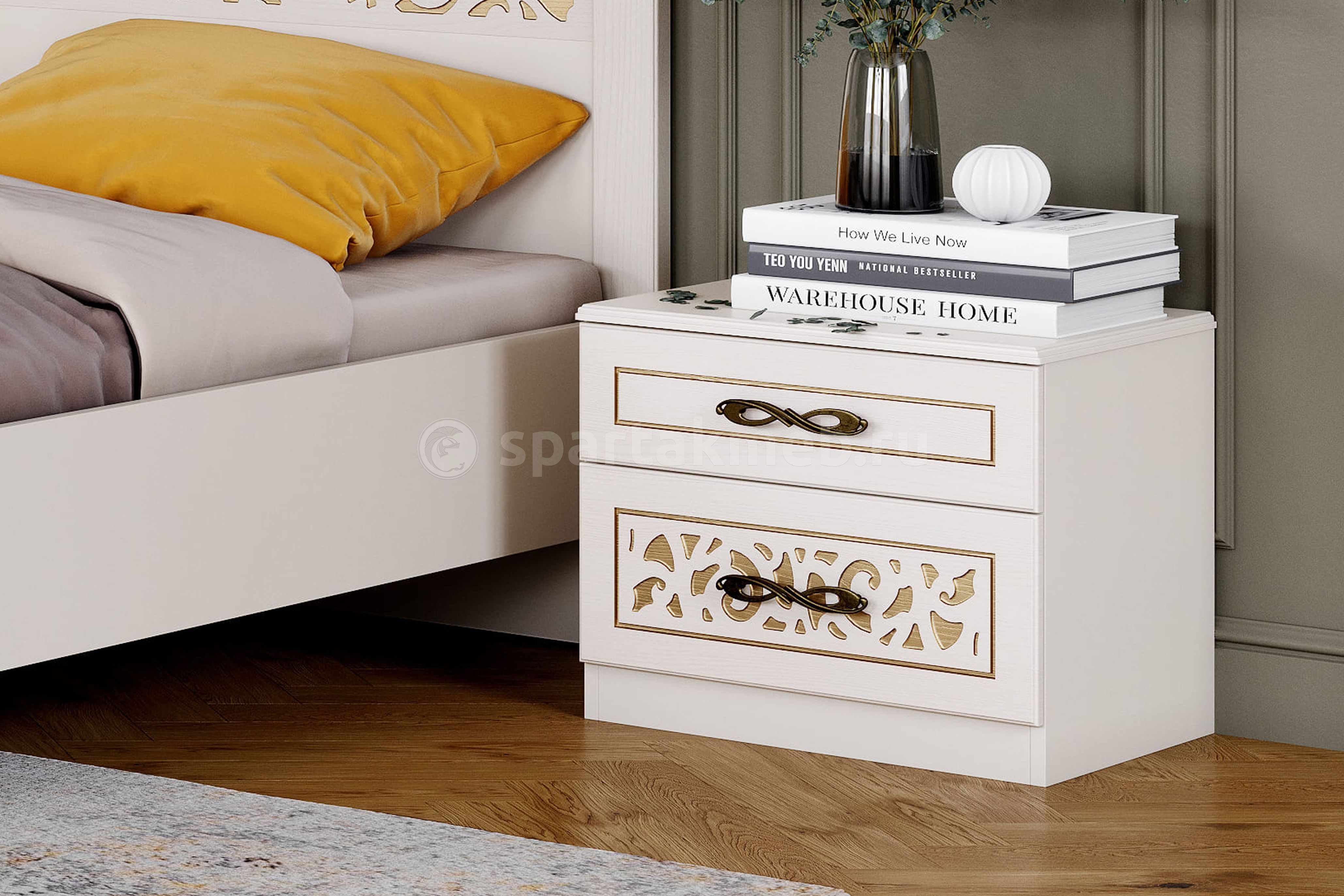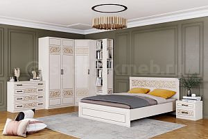 Спальный гарнитур «Оливия» выполнен в неоклассическом стиле. По-настоящему роскошной спальню делают оригинальная ажурная фрезеровка, оттенённая патиной "золото" и бронзовые ручки - вензеля. Тёплый цвет фасадов "Ясень жемчужный" создаст в спальне атмосферу уюта и спокойствия.МАТЕРИАЛ - ЛДСПМАТЕРИАЛ - МДФМДФ — плитный строительный материал, изготавливаемый из мелкой древесной стружки с добавлением натуральных связующих компонентов. Он обладает гладкой, однородной поверхностью, которая может покрываться лаком и краской, облицовываться пластиком или шпоном. Произведенные из него изделия обладают длительным сроком службы, экологической безопасностью, износостойкостью и устойчивостью к воздействию влаги.