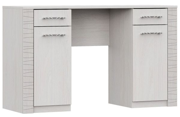 Стол комплектуется двумя тумбами с закрытым распашной створкой отделением 348х522х400 мм и отделением с выдвижным ящиком размером 216х80х318 мм. Отделения со створкой комплектуются съемной полкой. Стол можно укомплектовать модулем «Зеркало (стол туалетный)», которое крепится с внутренней стороны стола на шурупы 4х30 и евровинты. Для безударного закрывания створок, модуль можно укомплектовать накладными демпферами.