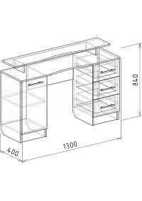 Ширина, мм 1300 Высота, мм 840 Глубина, мм 400 Материал ЛДСП, МДФ Особенности стола С тумбой, С ящиками, С надстройкой Страна производитель Россия Гарантия 12 мес -