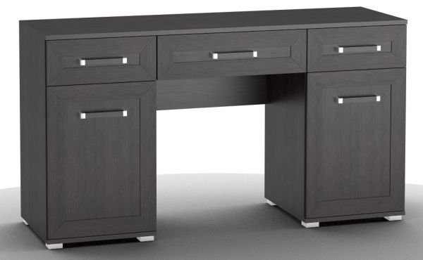 Крышка стола обработана кромкой ПВХ толщиной 2мм с трех видимых сторон. Модуль имеет три выкатных ящика на Quadro направляющих с доводчиком и два распашных фасада на петлях с доводчиком.