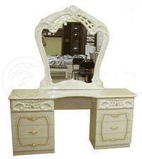 Туалетный стол с зеркалом в раме Роза, от Российской фабрики "ДИА мебель". Выполнена в классическом стиле. Она имеет два открывающихся ящика. Ручки цвета позолоты придают богатую атмосферу. Маленькая, но очень вместительная и удобная тумбочка удивит Вас своей многофункциональностью.МАТЕРИАЛ - ЛДСПМАТЕРИАЛ - МДФ