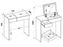 Тип стола Раскладной Ширина, мм 724 Высота, мм 740 Глубина, мм 356 Материал ЛДСП Особенности стола С зеркалом, С ящиками Страна производитель Россия Гарантия 12 мес -