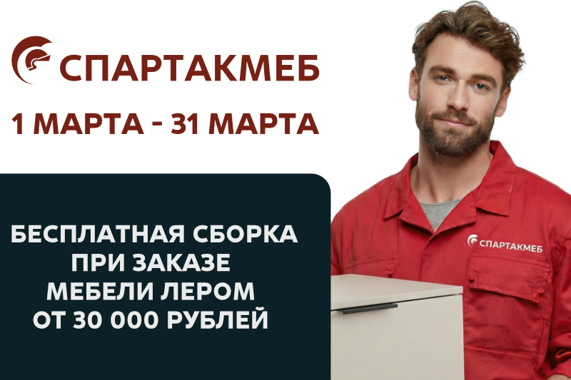 Правильно, нужно быстрее доставить ее домой! Только в СПАРТАКМЕБ бесплатная сборка при покупке товаров фабрики Лером от 30 000 рублей. Успей воспользоваться акцией с 1 марта - 31 марта Доставка осуществляется по городу Твери.